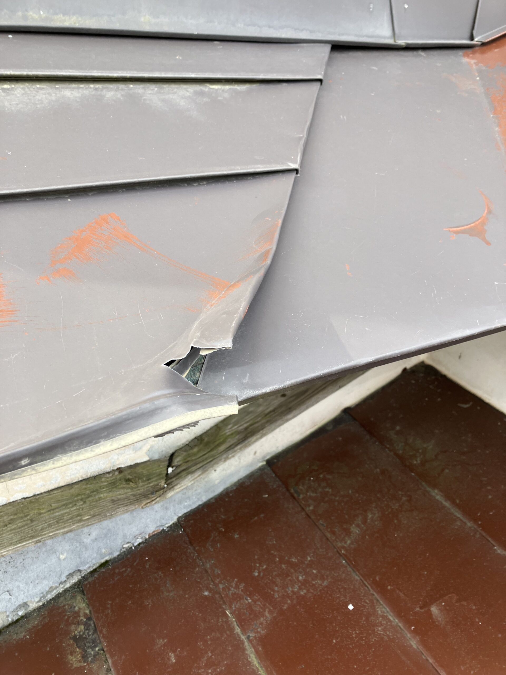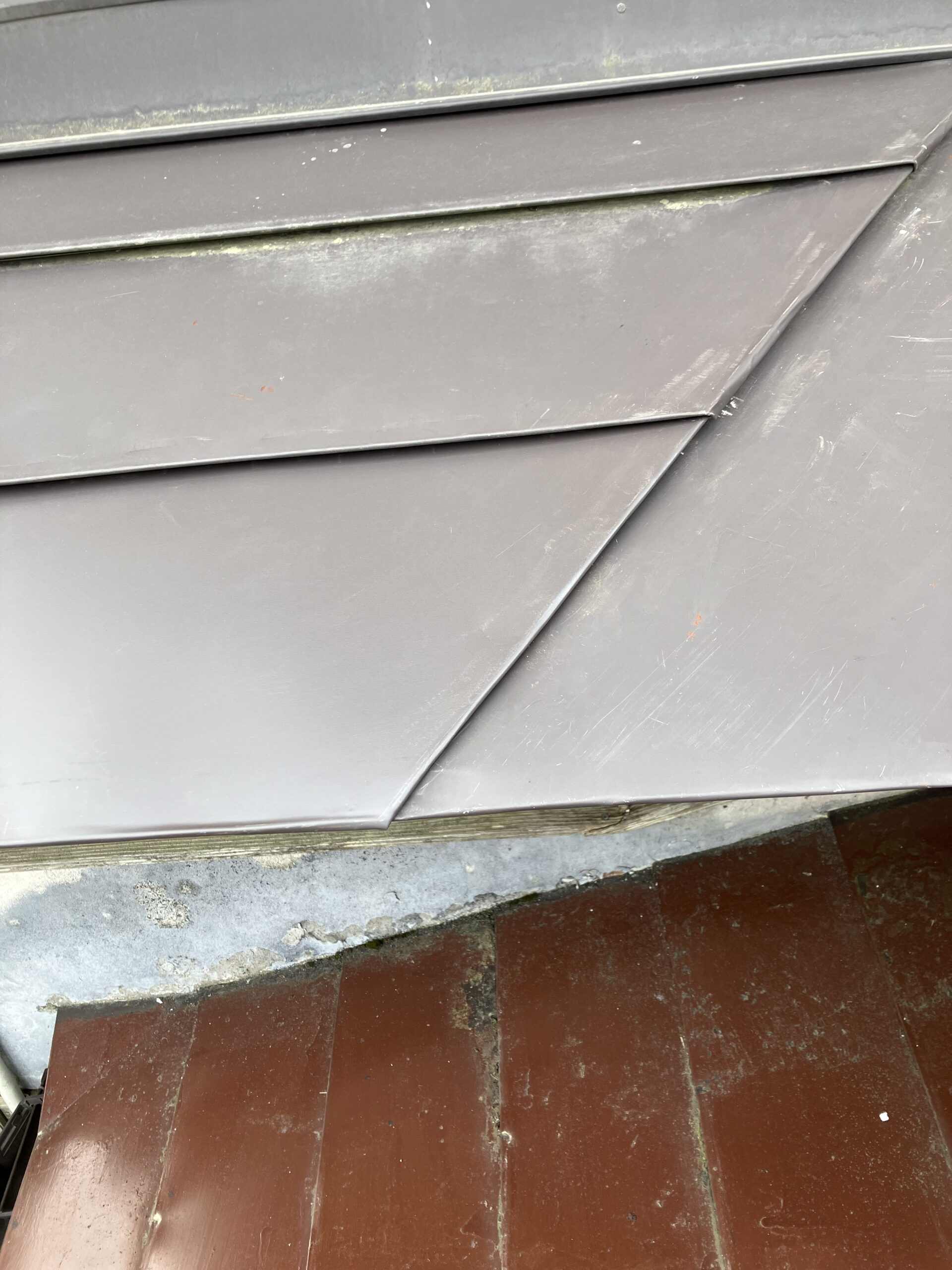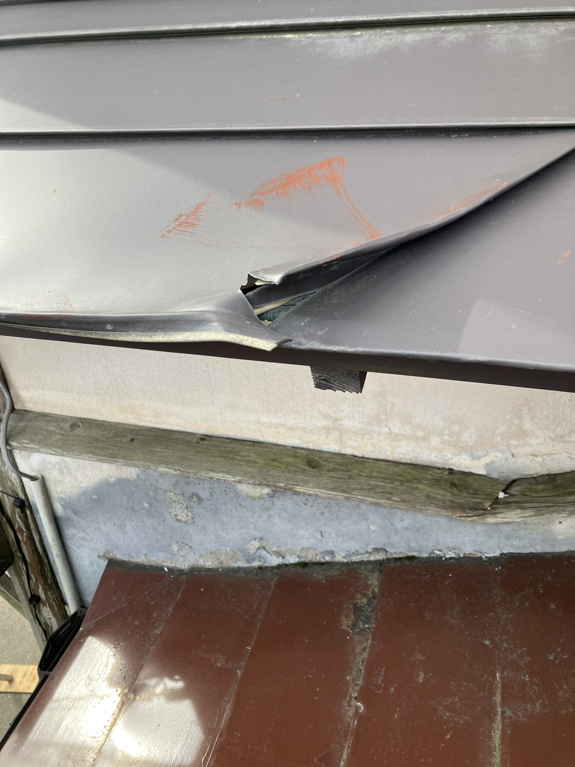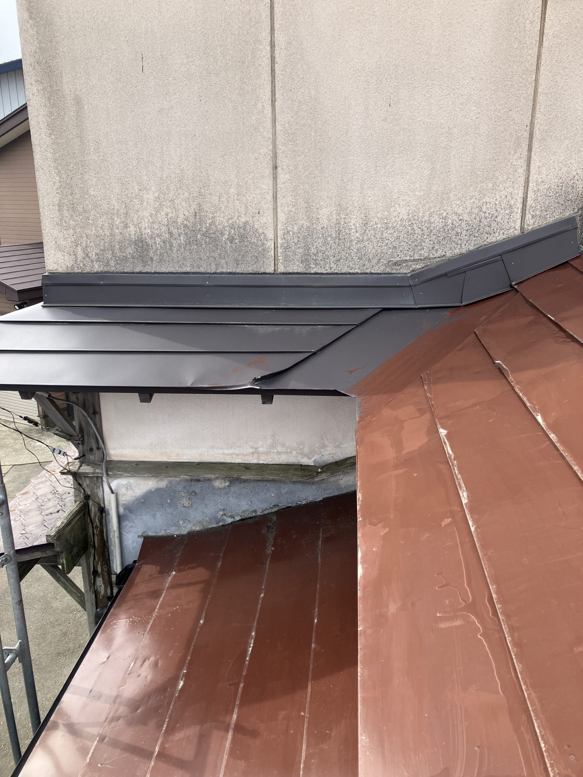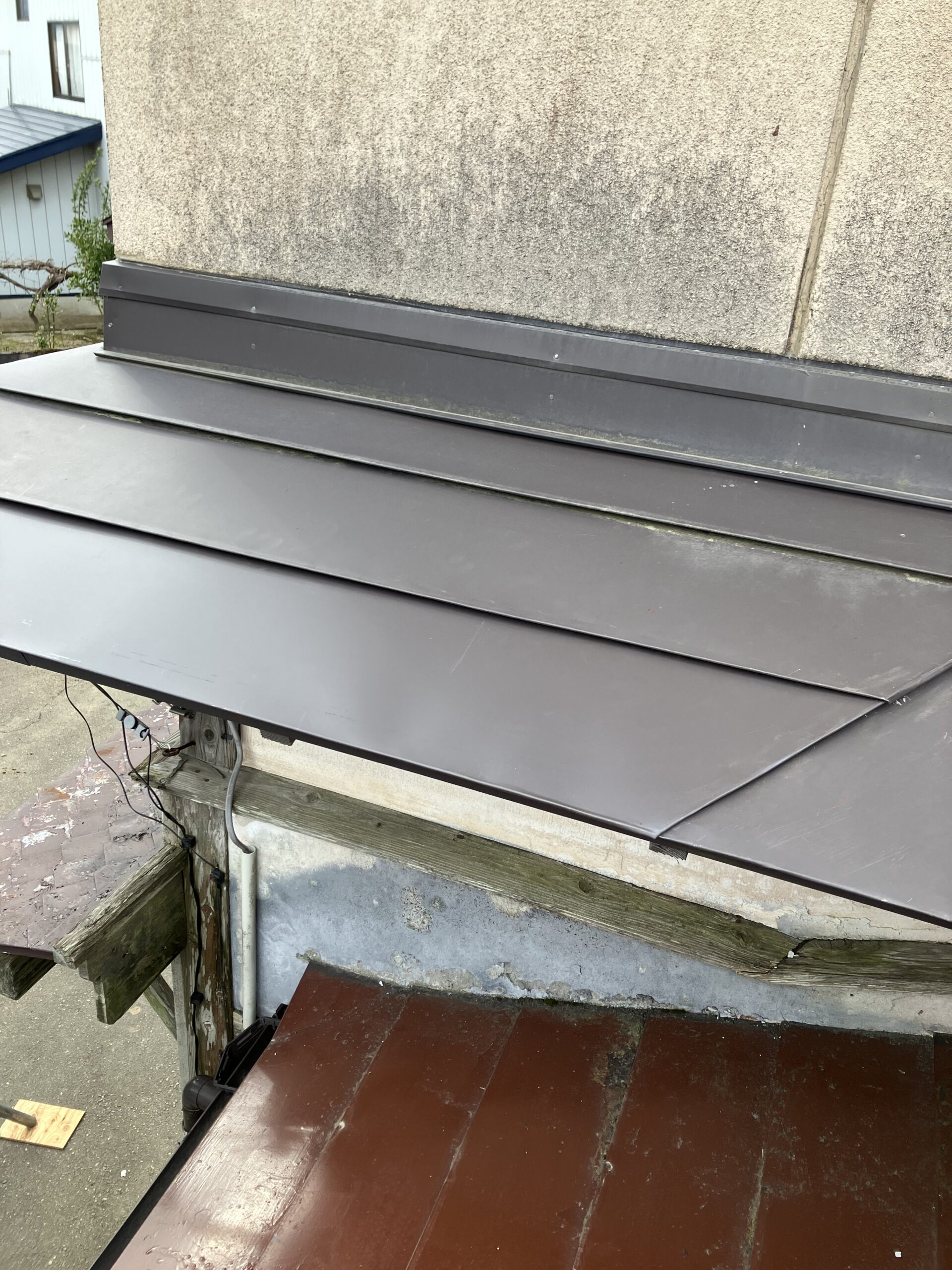 以前屋根の葺き替え工事を行なったお客様から屋根の修理工事を依頼されました。現地調査に行ったところ屋根の一部が雪害を受けてトタンが裂けてました。お客様と相談し、一部だけ交換するようにしました。