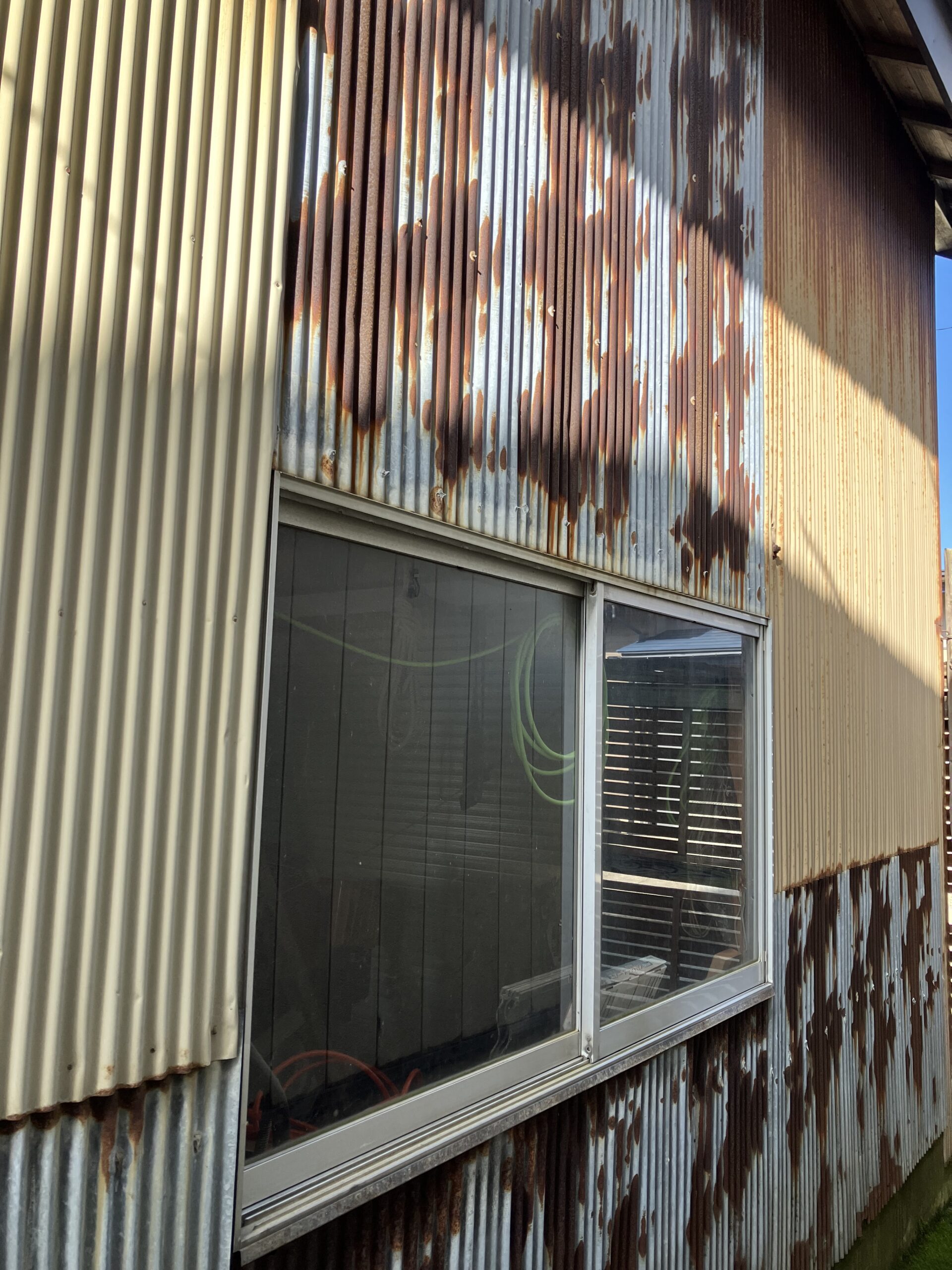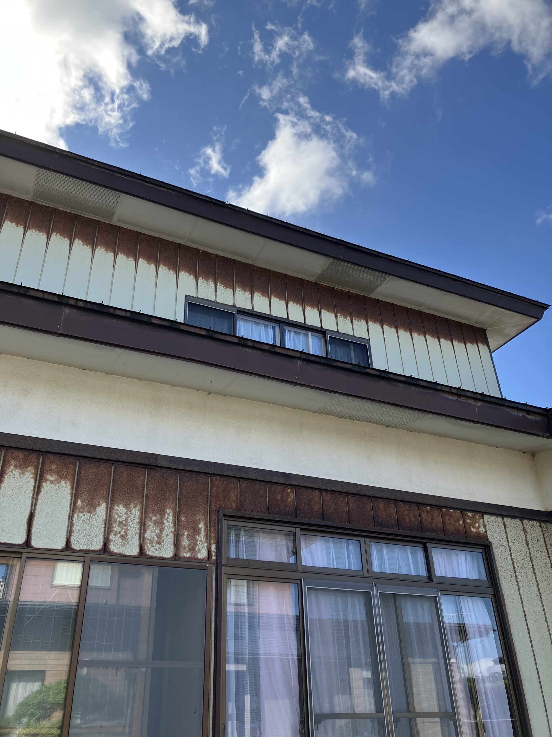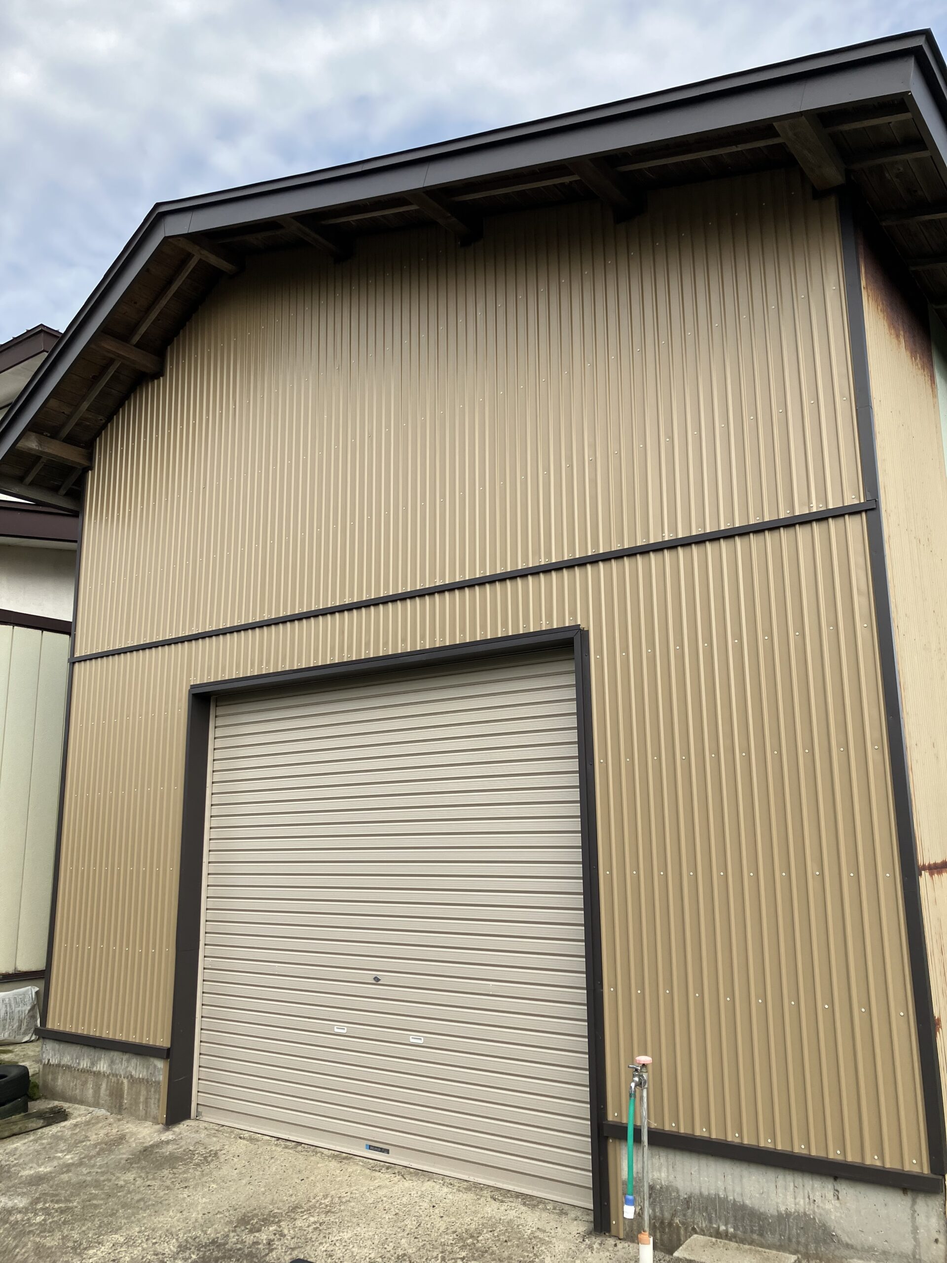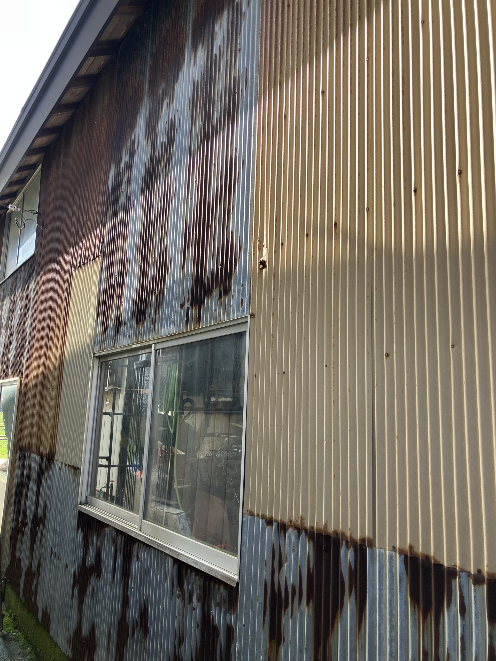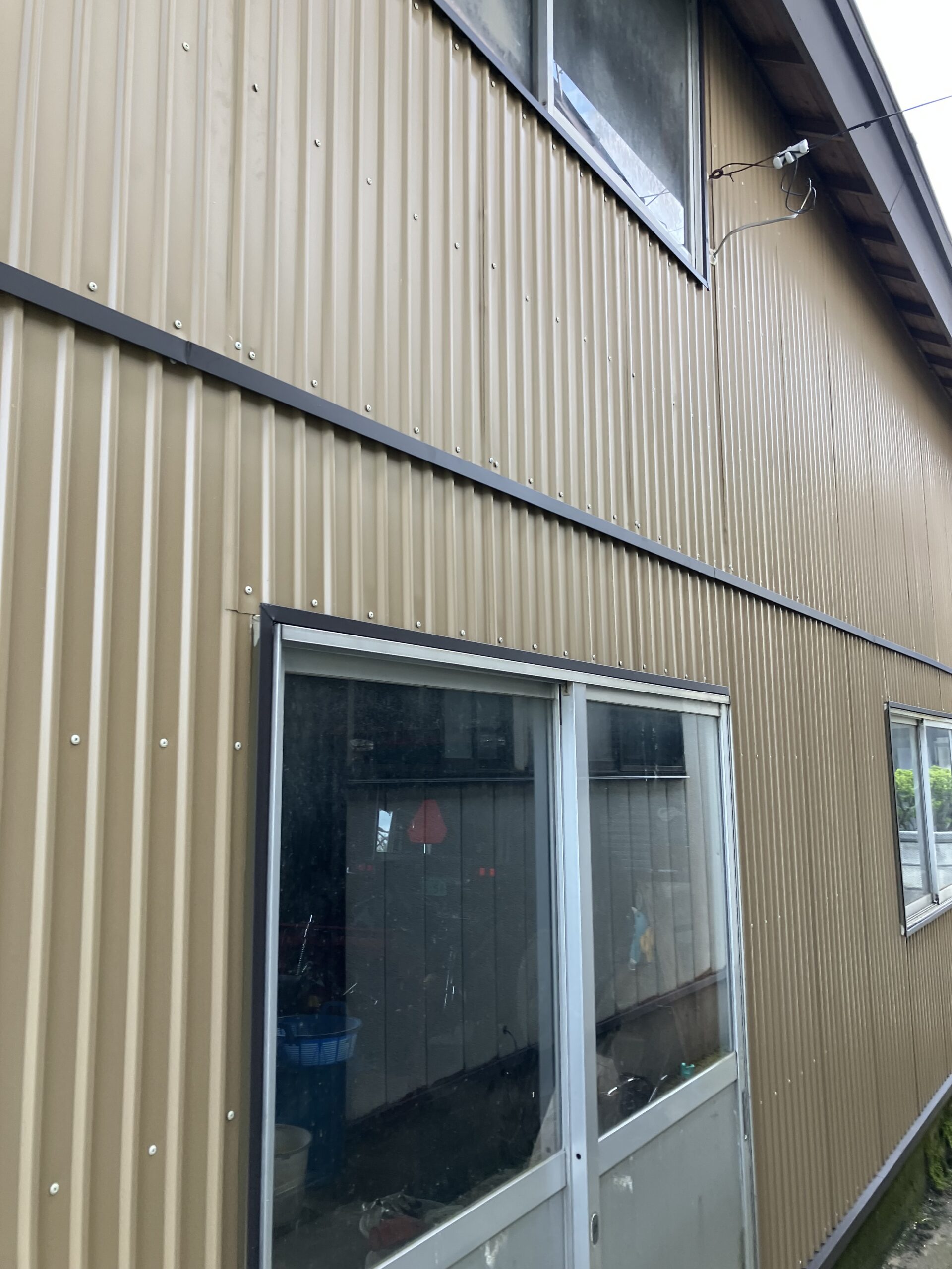 今年の4月に格納庫の屋根の葺き替え工事を依頼されたお客様に今度は外壁工事と自宅の一部外壁工事を依頼されました。